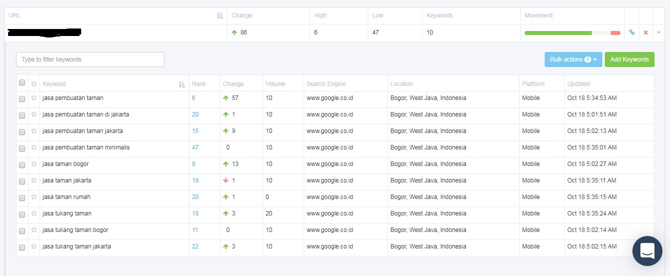 Untuk tanggal 20 tidak ada update karena memang tidak ada kegiatan yang signifikan yang dilakukan pada website target, namun hari ini sudah dilakukan penambahan 10 buah backlink PBN dengan target kota Bogor dan Jakarta.